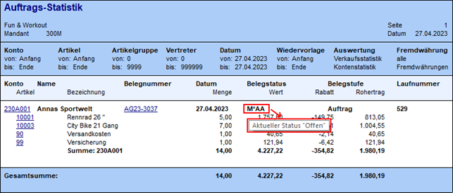 ü Artikelgruppenauswertung (WinLine FAKT)