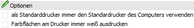 Mit dieser Option kann gesteuert werden, dass immer auf den Standarddrucker des Computers zugegriffen werden soll. Diese Option macht dann Sinn, wenn z.B. die Druckerzuordnung via Terminalserver mit jeder Anmeldung neu vergeben wird.