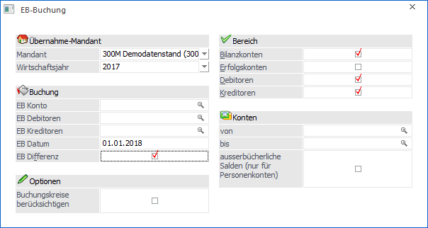 Bei nicht setzen dieser Option wird der Saldo des gewählten Jahres als EB-Buchung abgestellt. Es erfolgt kein Abgleich mit dem aktuellen EB-Wert.