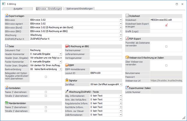 Webservice E-Rechnung an Italien (um diesen Bereich nutzen zu können, muss die entsprechende Lizenz "eBilling IT" vorhanden sein)