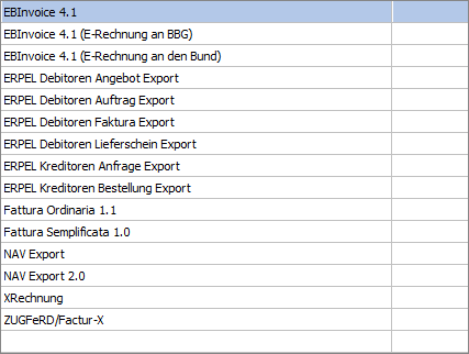 Übermittelt werden für den Bereich "eBilling IT" und Webservice nur Belege mit dem Exporttyp "3 XML-Exportvorlage". Bei allen Exporttypen erfolgt ein entsprechender Hinweis und der Versand wird abgebrochen.