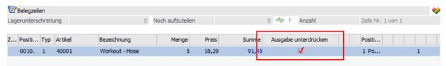 Ø Belegzeilen mit der Option "Ausgabe unterdrücken" nicht übernehmen