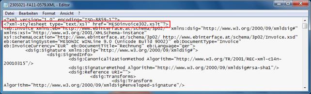 Dies hat den Vorteil, dass jemand der eine exportierte Rechnung (XML-Datei) erhält und Zugriff auf das Internet hat, auch diese Datei automatisch angezeigt bekommt.
