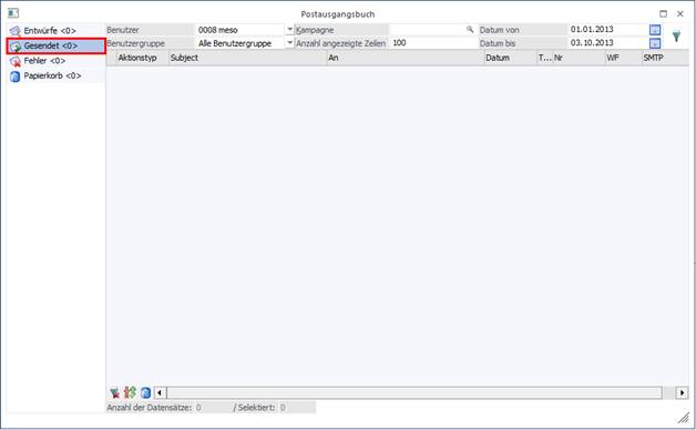 Im Postausgangsbuch wird das Mail bei dem es zum Fehlerfall gekommen ist im Ordner "Fehler" abgelegt, alle folgenden Mails im Ordner "Entwürfe". Von dort können die Mails in weiterer Folge erneut versendet werden.