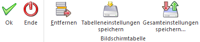 Ø Tabelleneinstellungen speichern