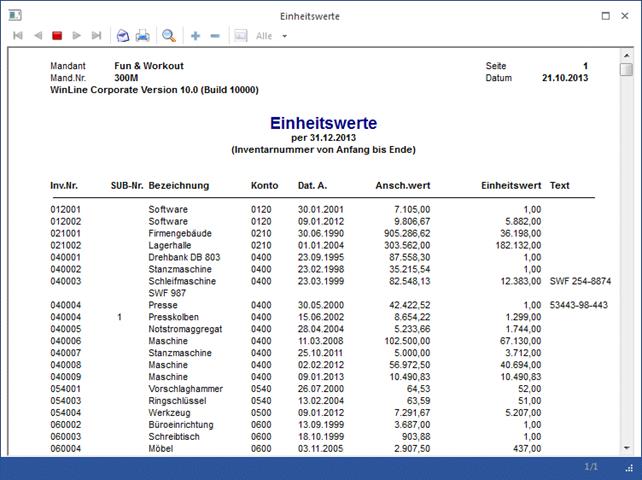 Es werden nur die Summen pro Inventargut ausgegeben, d. h. sollte es Subanlagen dazu geben, werden diese NICHT angezeigt.