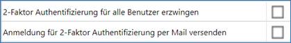 aktiviert werden. Dort stehen zwei Checkboxen für die 2FA zur Verfügung: