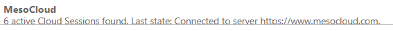 So können (über die konfigurierte Anzahl hinaus) weitere MesoCloud-Sitzungen gestartet werden. In der darunter liegenden Tabelle wird bei "MesoCloud" der Status der Sessions angezeigt (entweder mit Angabe eines Fehlers, oder mit Angabe der Anzahl der aktuell laufenden Sitzungen).