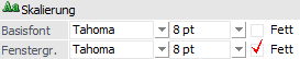 Über die Fenstergröße kann gesteuert werden, mit welcher Basisschriftart das Fenster aufgebaut werden soll. Sinnvollerweise sollte bei der Fenstergröße die gleiche Größe oder aber eine größere Schriftart verwendet werden, als beim Basisfont. Auch hier kann neben der Schriftart und Schriftgröße das Attribut "Fett" aktiviert werden.