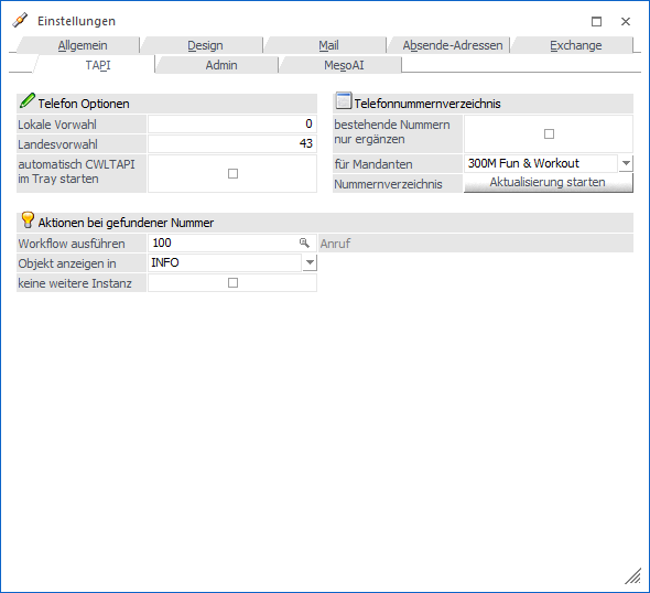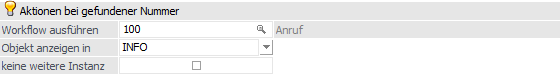 Wenn hier ein CRM-Workflow bzw. eine CRM-Aktion hinterlegt wird, so wird diese(r) bei einem Anruf über TAPI, wo die Nummer einem Kontakt zugeordnet werden konnte, automatisch gestartet.