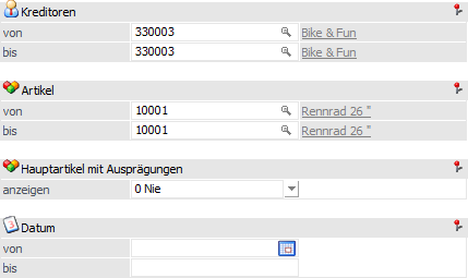 Wird im Feld "Artikel von / bis" z.B. nur eine Artikelnummer eingegeben und dieser Artikel wird mit Ausprägungen (z.B. Lagerorte) geführt, dann werden alle Ausprägungen automatisch in der Selektion mit berücksichtigt. Nur wenn während der Anwahl des Buttons "Anzeigen" die STRG-Taste gedrückt wird, erfolgt die Ausgabe nur für den Hauptartikel alleine.