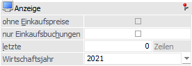 Wenn diese Option aktiviert ist, werden in der Tabelle nur die Einkaufsbuchungen (das entspricht dem Buchungscode FL) angezeigt, alle anderen Zugangsbuchungen (z.B. L) werden ausgeblendet. Diese Option hat nur dann eine Auswirkung, wenn nicht auf einen Lieferanten eingeschränkt wird.