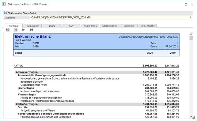 Mittels XML-Viewer kann eine E-Bilanz oder ERV-JAb Datei geladen und dargestellt werden. Dazu muss der Speicherpfad der Datei im Eingabefeld Dateiname eingegeben werden (mittels Matchcode, Drag & Drop oder manuell) und mit Enter bestätigt werden.