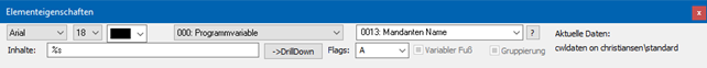 Im Feld "Inhalte" wird in Abhängigkeit des Typs des Elements der Text oder die Formatierung der Variable angezeigt.