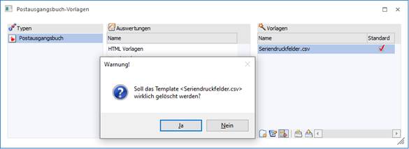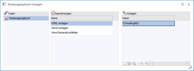 Im Fenster "Postausgangsbuch-Vorlagen" kann eine neue