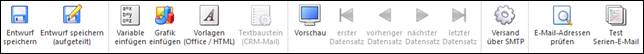 Es kann im Ribbon zwischen diesen beiden Arten selektiert werden. Mit den Optionen "Einzel-E-Mail" und "Serien-E-Mail" können Emails an einen oder mehrere Empfänger versendet werden.