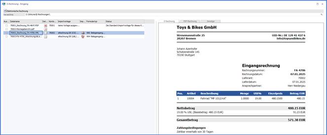 der Anzeige der Inhalt der E-Rechnung 1 zu 1 dargestellt.