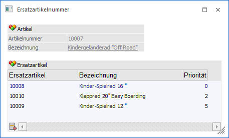 Weitere Ersatzartikel können im Fenster "Ersatzartikelnummer"