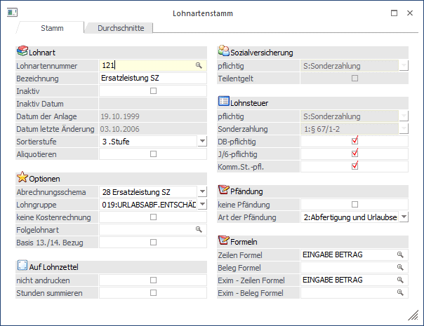 Lohnsteuertage eingetragen, die für die "normale" Abrechnung gelten. Bei