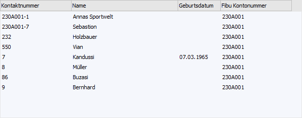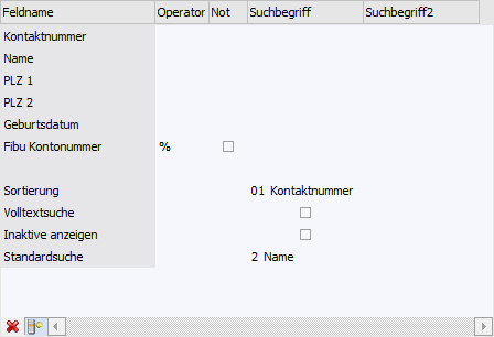 Wenn in dem Feld "Kontaktnummer" ein Teil der gesuchten Nummer oder des Namens eingetragen wurde und die Taste F9 gedrückt wird, dann wird diese Eingabe als Suchbegriff übernommen und die Suche direkt gestartet.