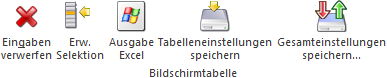 Tabellenbuttons in der Selektionstabelle