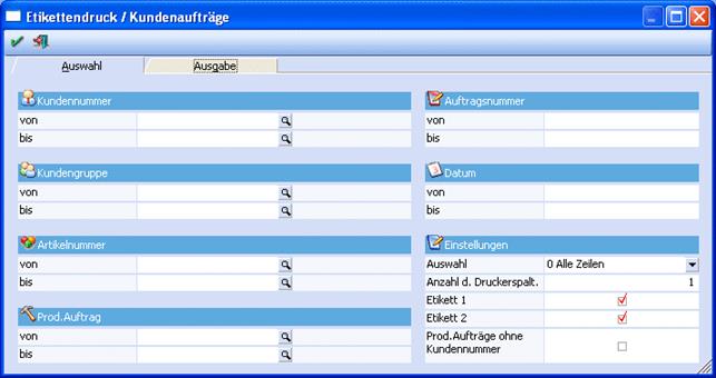 Einschränkung der Kunden, für deren Aufträge Artikeletiketten gedruckt werden sollen.