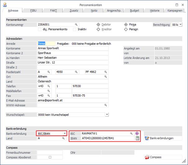 Die BIC-Aktualisierung wird in die Stammdaten geschrieben. Sind in den Stammdaten bereits BIC-Daten vorhanden und die BIC-Aktualisierung bringt BIC-Änderungen mit sich, werden diese Daten editiert.