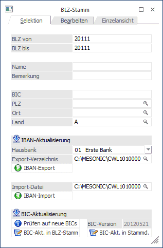 Die BIC-Aktualisierung wird in den BLZ-Stamm geschrieben.