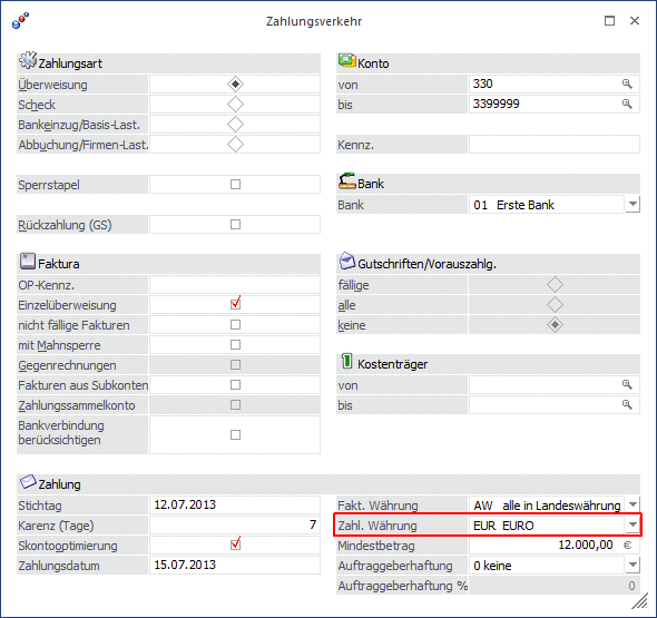 ü Zahlungsform - es darf keine "Eilüberweisung" verwendet werden, es muss die Option "TRF normale Überweisung" eingestellt werden.