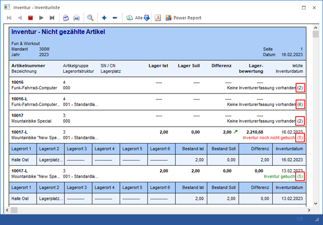 Die Daten der Ausgabe stammen aus der Inventurerfassung und
