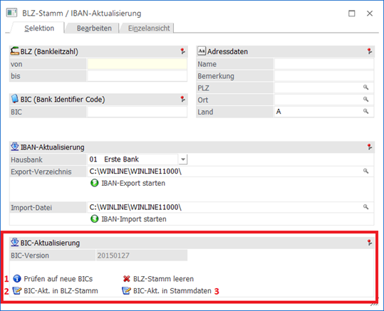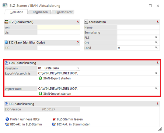 Die BIC-Aktualisierung wird in den BLZ-Stamm geschrieben.