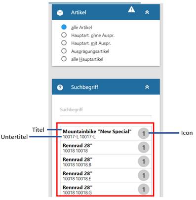 Wird kein Feld als Titel, Untertitel oder Icon ausgewählt, wird diese Tabelle in der WinLine mobile automatisch in der erweiterten Tabellenansicht dargestellt.