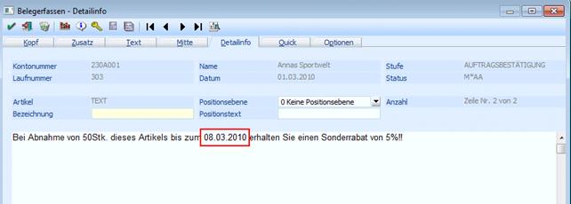 Der Textbaustein wird abgeändert: Die Option auf den Sonderrabatt soll bis zum 10.03.2006 verlängert werden: