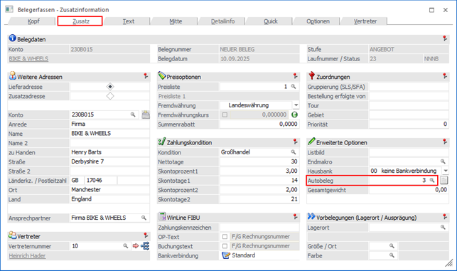 … mit einem Beleg verbunden werden. Hierfür muss, nach dem Laden des Belegs, zunächst in das Register Zusatz gewechselt werden.