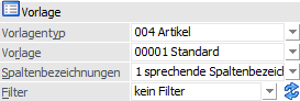 der unter "Vorlage" selektierten Vorlage und des Vorlagentyps bilden sich
