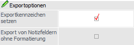 Wird diese Checkbox aktiviert, dann wird für enthaltene Notizfelder in der Vorlage nur der Klartext exportiert. Ist diese Checkbox nicht aktiviert, dann wird der Text inklusive RFT-Formatierungszeichen exportiert.
