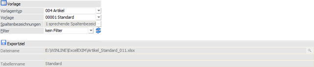 Über den Vorlagetyp wird festgelegt, für welchen Stammdatenbereich der Export erfolgen soll.