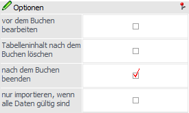 Wird diese Checkbox angewählt, so werden die Tabelleninhalte nach der Buchung gelöscht (die SQL-Tabelle selber bleibt erhalten).