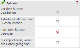 Wird diese Checkbox angewählt, so werden die Tabelleninhalte nach der Buchung gelöscht (die SQL-Tabelle selber bleibt erhalten).