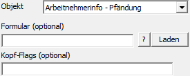Mit Hilfe des Objekts "Arbeitnehmerinfo - Pfändung" können die Pfändungen eines Arbeitnehmers ausgegeben werden. Welche Informationen dabei genau angedruckt werden sollen, wird über ein extra Formular gesteuert. Als Key dient der "AN-Key" (d.h. Feld "Text" oder Bereich "View / Var" muss gefüllt sein).