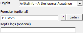 Mit Hilfe des Objekts "Artikelinfo - Artikeljournal Ausgänge" können die Artikeljournalzeilen (Ausgänge) eines Artikels ausgegeben werden. Welche Informationen dabei genau angedruckt werden sollen, wird über ein extra Formular gesteuert. Als Key dient die "Artikelnummer" (d.h. Feld "Text" oder Bereich "View / Var" muss gefüllt sein).