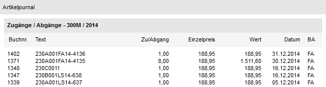 Es handelt sich bei diesem Objekt um eine Information aus der Artikelinformation. Für die Darstellung werden die benutzerspezifischen Einstellungen der Artikelinformation (z.B. "Letzte x Zugänge / Abgänge") genutzt.
