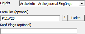 Externes Objekt - Typ "Objekt - Artikelinfo - Artikeljournal Eingänge"