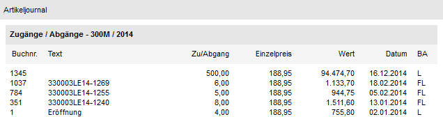 Es handelt sich bei diesem Objekt um eine Information aus der Artikelinformation. Für die Darstellung werden die benutzerspezifischen Einstellungen der Artikelinformation (z.B. "Letzte x Zugänge / Abgänge") genutzt.