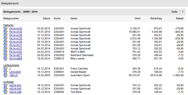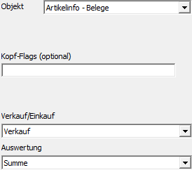 Mit Hilfe des Objekts "Artikelinfo - Belege" können die Belege eines Artikels ausgegeben werden. Als Key dient die "Artikelnummer" (d.h. Feld "Text" oder Bereich "View / Var" muss gefüllt sein).