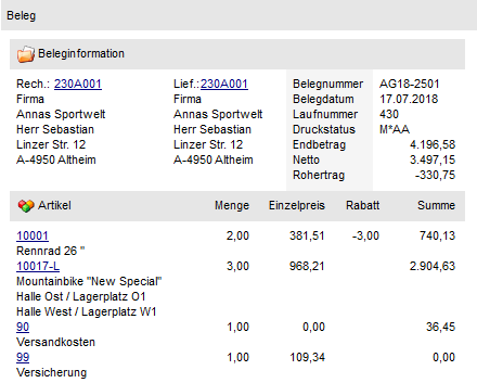 Hilfe des Objekts "Beleginfo" kann der Inhalt eines Belegs ausgegeben werden. Welche Informationen dabei genau angedruckt werden sollen, wird über ein extra Formular gesteuert. Als Key dient die "Kontonummer-Laufnummer" (T025.C000) eines Belegs (d.h. Feld "Text" oder Bereich "View / Var" muss gefüllt sein).