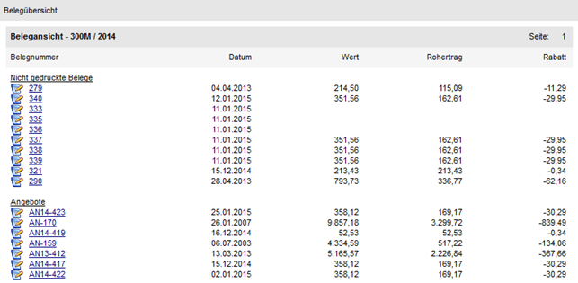 Es handelt sich bei diesem Objekt um eine Information aus der Kontoinformation. Für die Darstellung werden die benutzerspezifischen Einstellungen der Kontoinformation (z.B. "Letzte x Belege") und die entsprechenden Formulare genutzt.