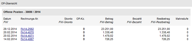 Es handelt sich bei diesem Objekt um eine Information aus der Kontoinformation. Für die Darstellung werden die benutzerspezifischen Einstellungen der Kontoinformation (z.B. "Letzte x Offene Posten") genutzt.