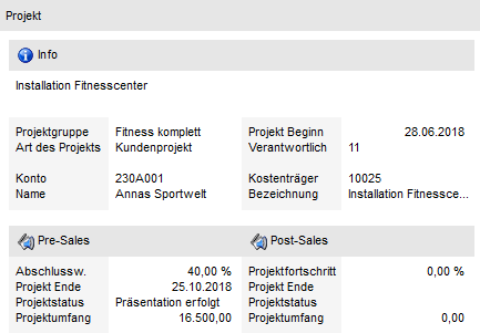 Mit Hilfe des Objekts "Projekt" können Projektinformationen ausgegeben werden. Welche Informationen dabei genau angedruckt werden sollen, wird über ein extra Formular gesteuert. Als Key dient die "Projektnummer" (d.h. Feld "Text" oder Bereich "View / Var" muss gefüllt sein).