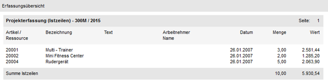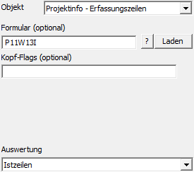 Mit Hilfe des Objekts "Projektinfo - Erfassungszeilen" können die Projekterfassungszeilen eines Projekts ausgegeben werden. Welche Informationen dabei genau angedruckt werden sollen, wird über ein extra Formular gesteuert. Als Key dient die "Projektnummer" (d.h. Feld "Text" oder Bereich "View / Var" muss gefüllt sein).